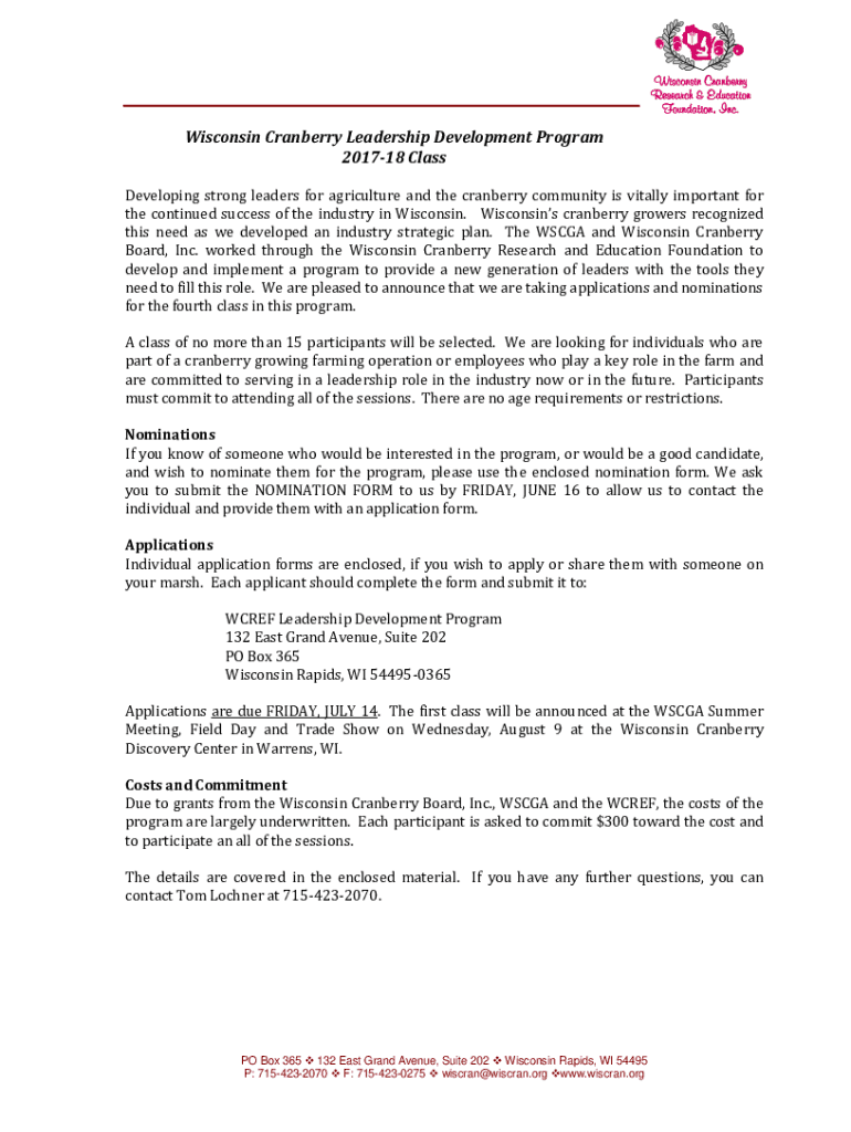 Get the free Wisconsin Cranberry Leadership Development Program ...