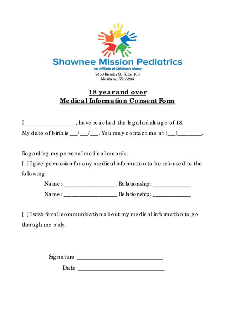 7450 Kessler St, Suite 105 Merriam, KS 6620418 year and over Medical Information Consent Form I ___, have reached the legal adult age of 18. My date of birth is ___/___/___. You may contact me at