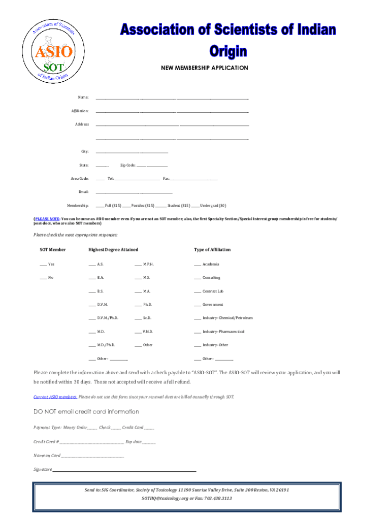 NEW MEMBERSHIP APPLICATIONName: Affiliation: Address___ ___ ___ ___City: State: Area Code: Email: Membership:___ ___Zip Code: ______ Tel: ___ Fax:___ ___ ___ Full ($15) ___ Postdoc ($15) ___ Student