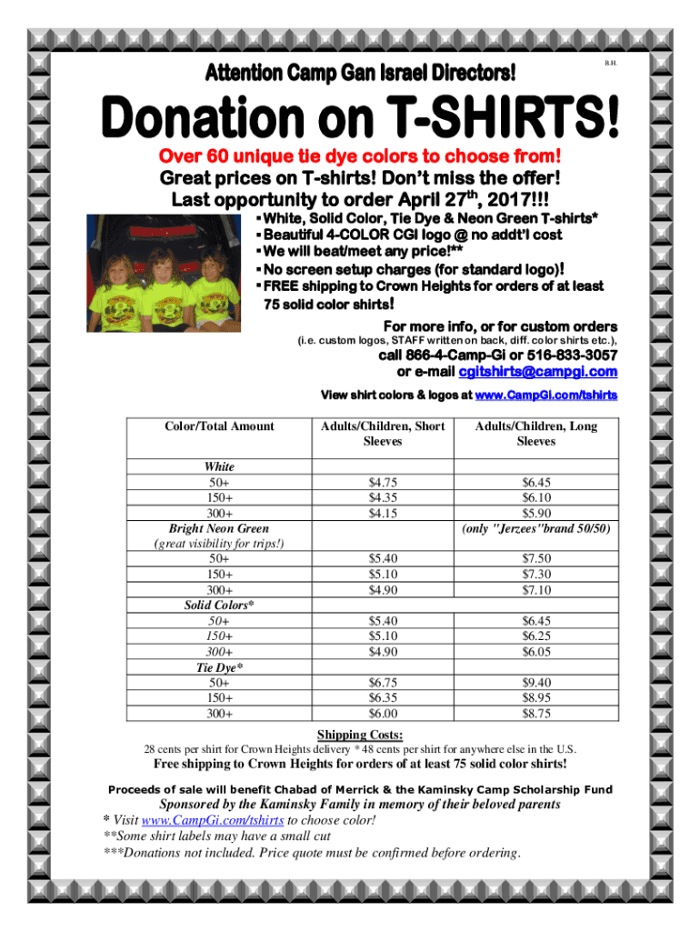 B.H. Over 60 unique tie-dye colors to choose from! Great prices on Shirts! Don't miss the offer! Last opportunity to order April 27th, 2017!!! White, Solid Color, Tie Dye & Neon Green Shirts* Beautiful