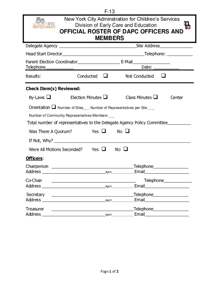 Division of Early Care and EducationOFFICIAL ROSTER OF APC OFFICERS AND