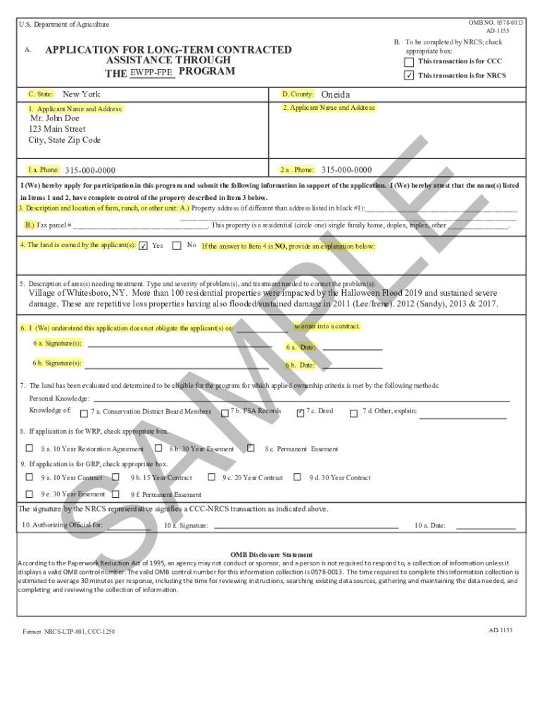 OMB NO. 05780013 AD1153U. S. Department of Agriculture A.B. To be completed by ARCS; check appropriate box: This transaction is for APPLICATION FOR LONGER CONTRACTED ASSISTANCE THROUGH THE EWPPFPE