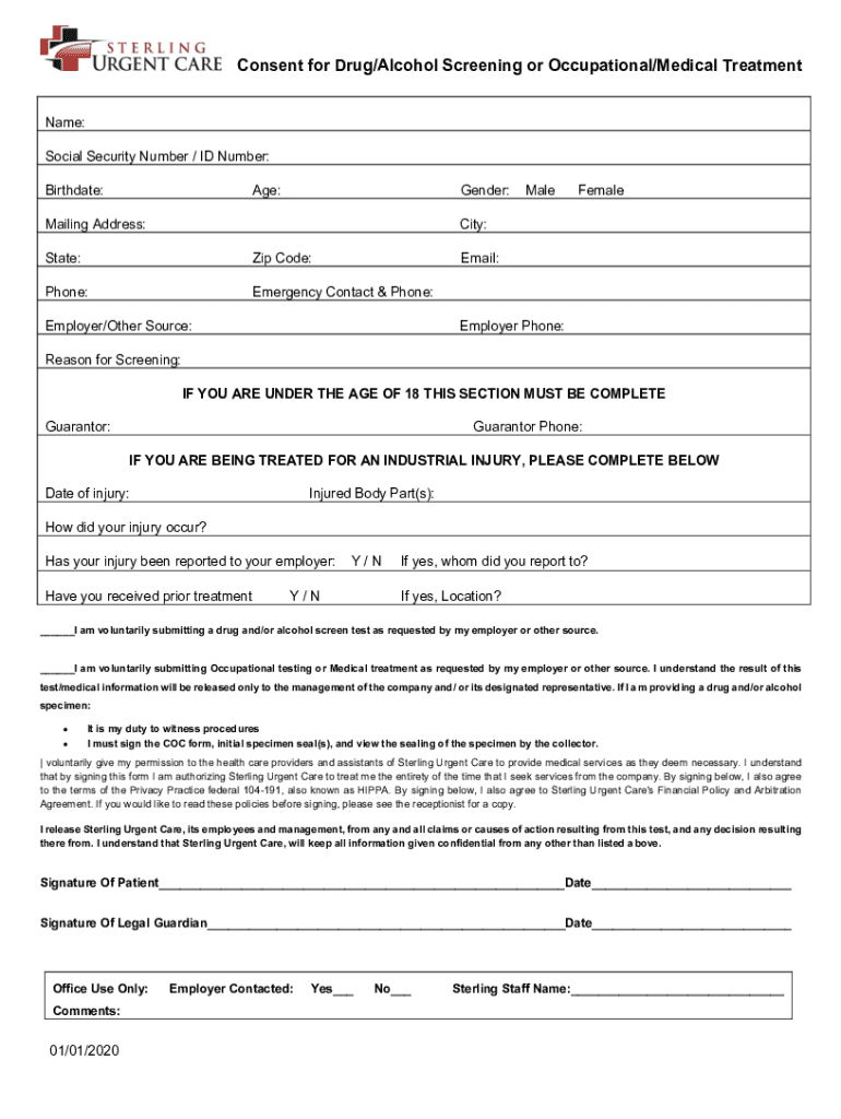 Consent for Drug/Alcohol Screening or Occupational/Medical Treatment