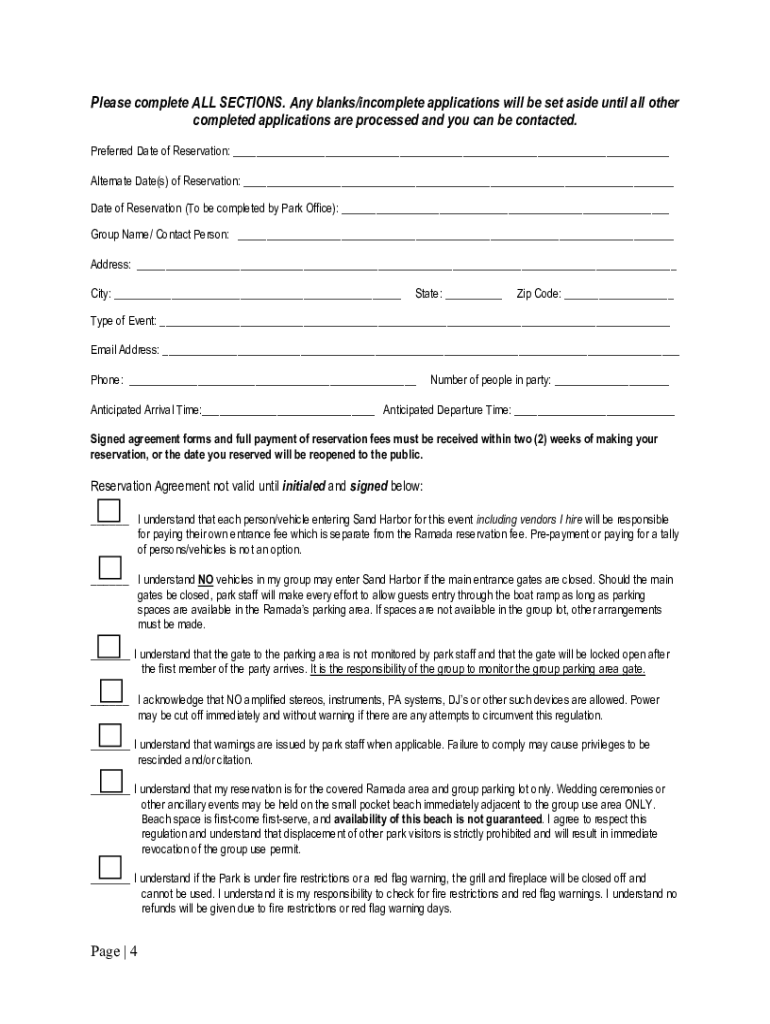SAND HARBOR RAMADA GROUP AREA RESERVATION INFORMATION FEES: Effective January 1, $2023400.00 for a days use of the Ramada Group Area Daily vehicle entrance fee for each vehicle upon entry to the Park