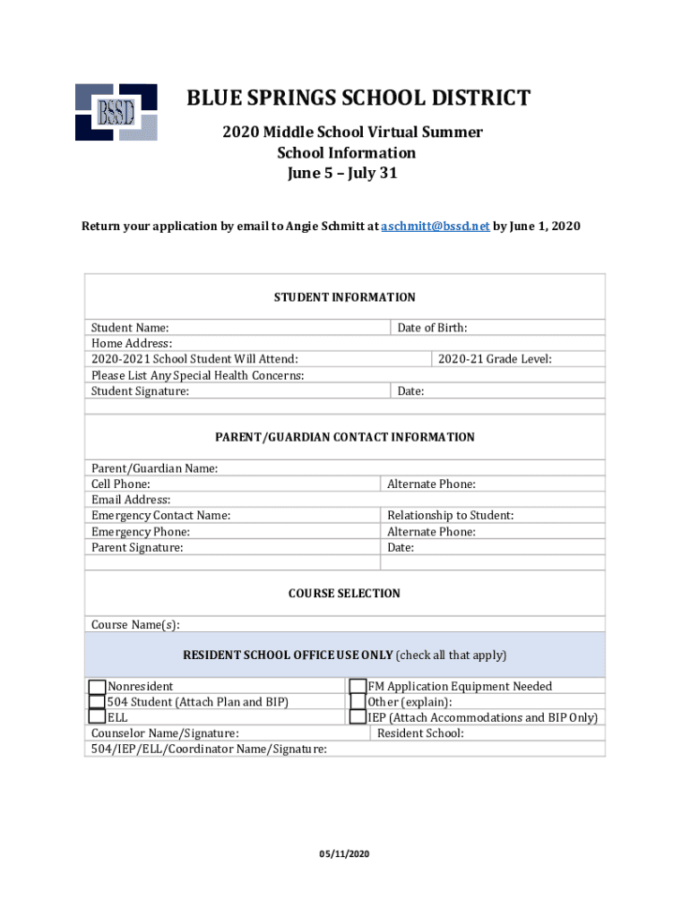Get the free High School School Virtual Summer Registration Form ...