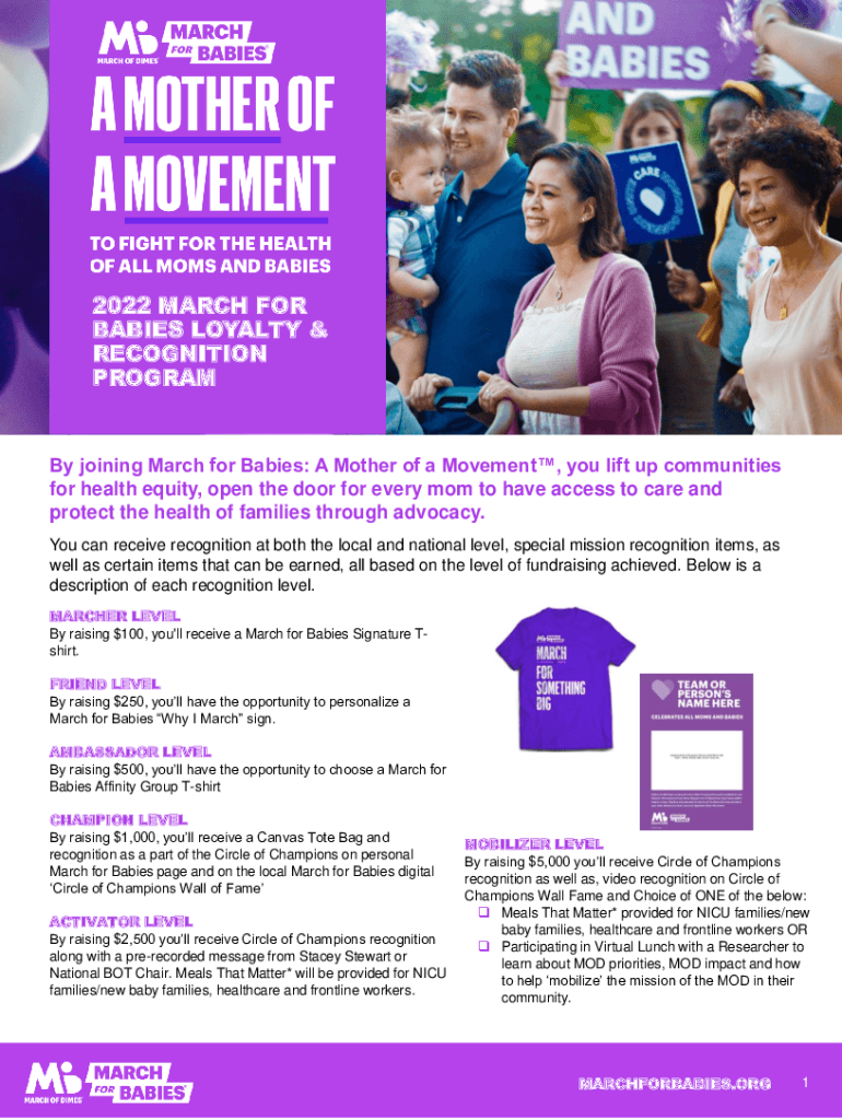2022 MARCH FOR BABIES LOYALTY & RECOGNITION Program joining March for Babies: A Mother of a Movement, you lift communities for health equity, open the door for every mom to have access to care and