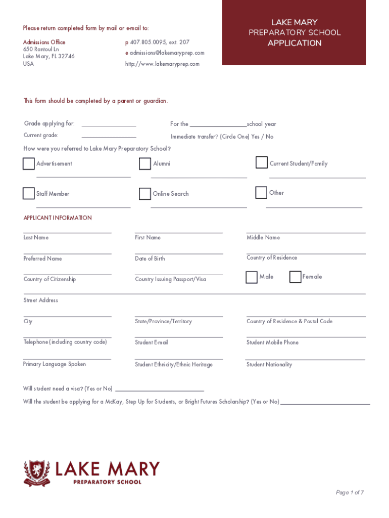LAKE MARY PREPARATORY SCHOOL APPLICATIONThank you for choosing Lake Mary Preparatory School, where our academic excellence and international opportunities will prepare your student for the world.