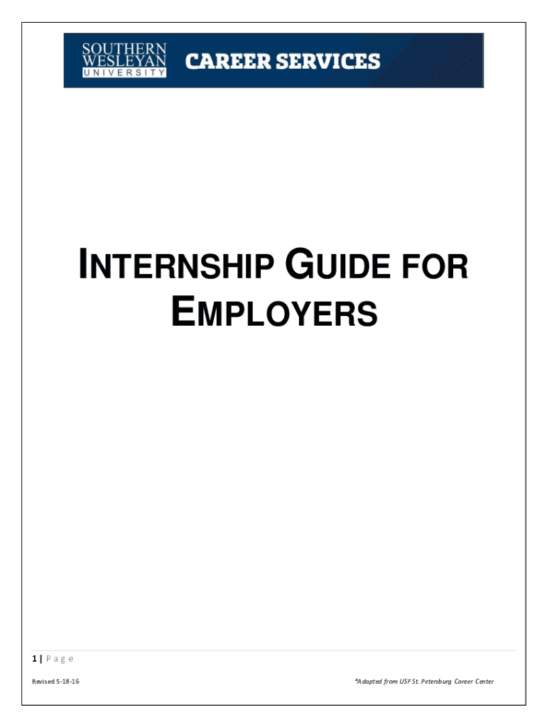 INTERNSHIP GUIDE FOR EMPLOYERS1|Page Revised 51816×Adapted from USF St. Petersburg Career Contestable OF CONTENTS PART 1: THE BASICS OF AN INTERNSHIP WHAT IS AN INTERNSHIP? . 3 WHAT ARE THE BENEFITS