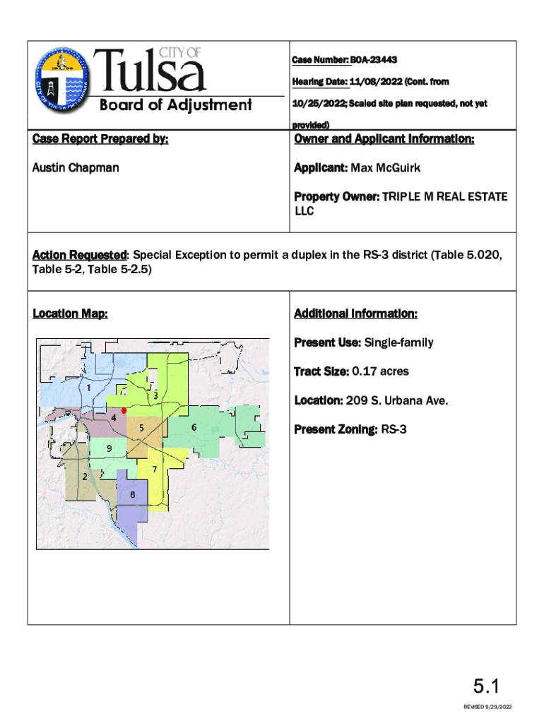 Case Number: BOA23443 Hearing Date: 11/08/2022 (Cont. From 10/25/2022; Scaled site plan requested, not yet Case Report Prepared by: Austin Chapman provided)Owner and Applicant Information: Applicant: