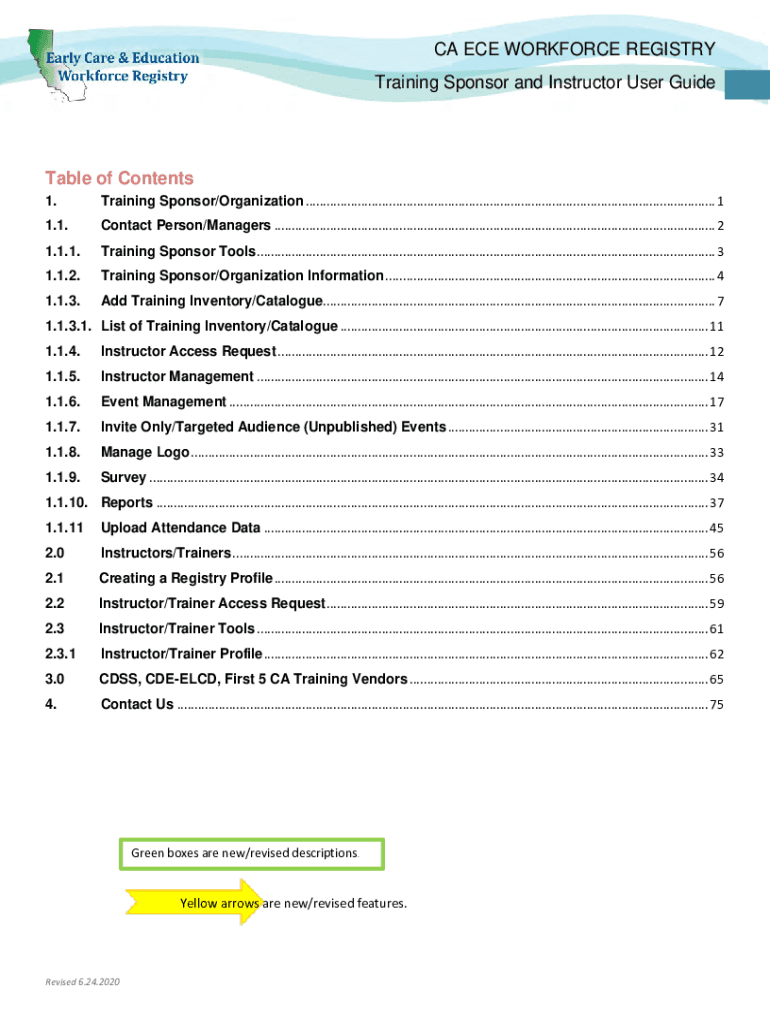 CA ECE WORKFORCE REGISTRY Training Sponsor and Instructor User Suitable of Contents 1. Training Sponsor/Organization ......................................................................................................................