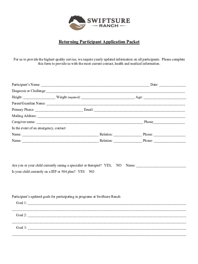 Returning Participant Application Packet us to provide the highest quality service, we require yearly updated information on all participants. Please complete this form to provide us with the most