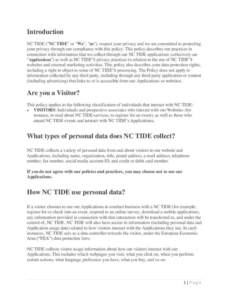 Introduction NC TIDE (\” NC TIDE\” or \” We\”, \” us\”), respect your privacy, and we are committed to protecting your privacy through our compliance with this policy. This policy describes