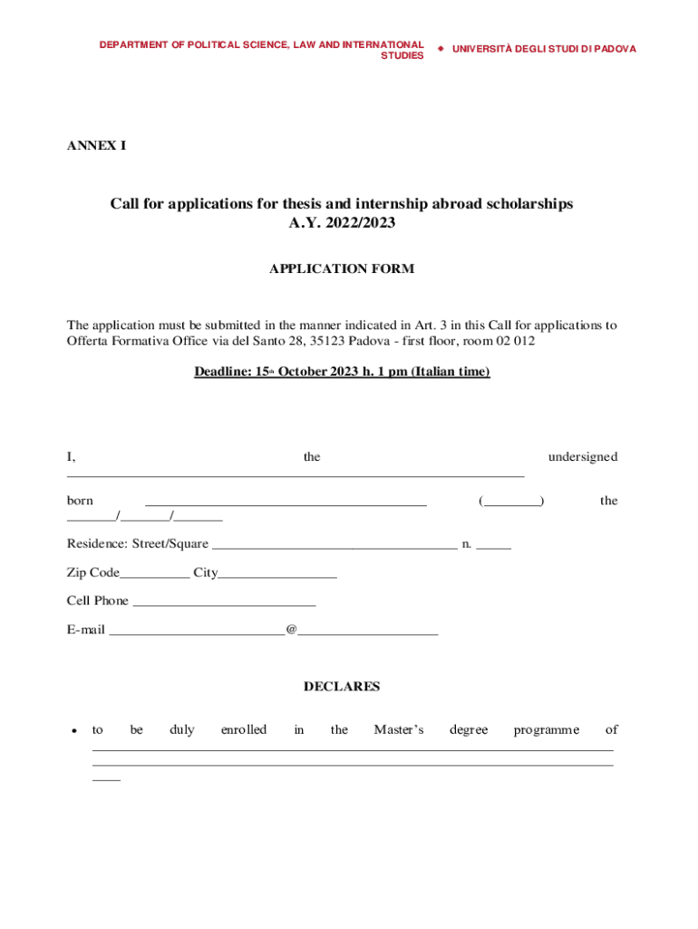 STUDIESUNIVERSIT DELI STUDIO DI PADOVAANNEX Call for applications for thesis and internship abroad scholarships