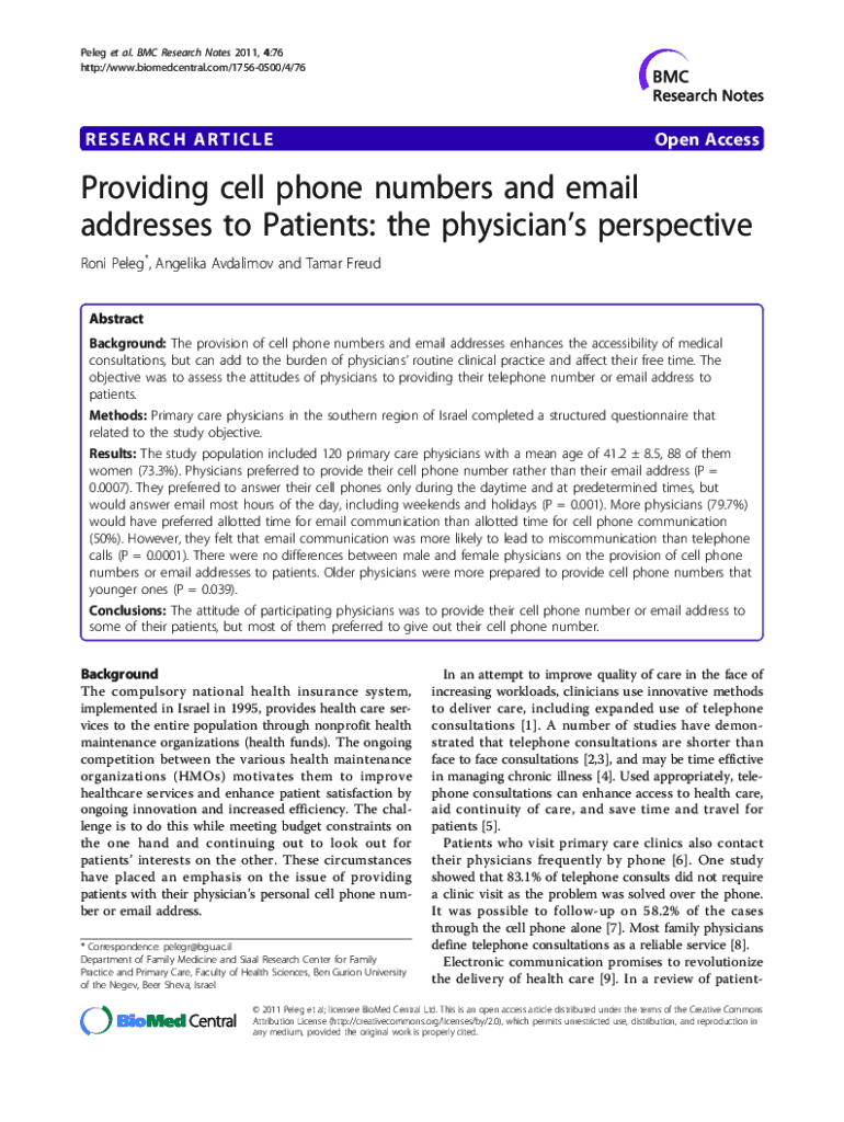 http://www.biomedcentral.com/17560500/4/76RESEARCH ARTICLEOpen AccessProviding cell phone numbers and email