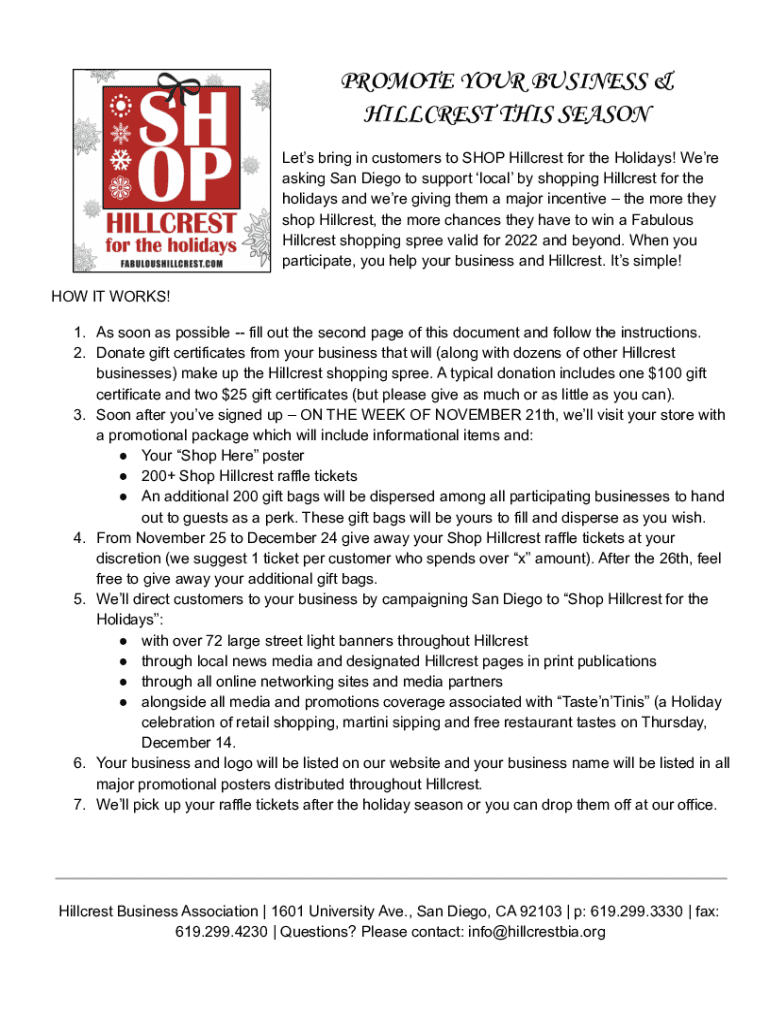 PROMOTE YOUR BUSINESS & HILLCREST THIS SEASON Lets bring in customers to SHOP Hillcrest for the Holidays! Were asking San Diego to support local by shopping Hillcrest for the holidays and were giving