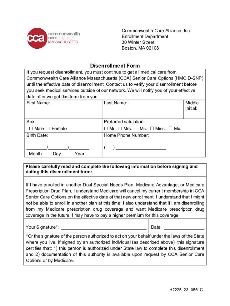 Commonwealth Care Alliance, Inc. Enrollment Department 30 Winter Street Boston, MA 02108Disenrollment Formic you request disenrollment, you must continue to get all medical care from Commonwealth
