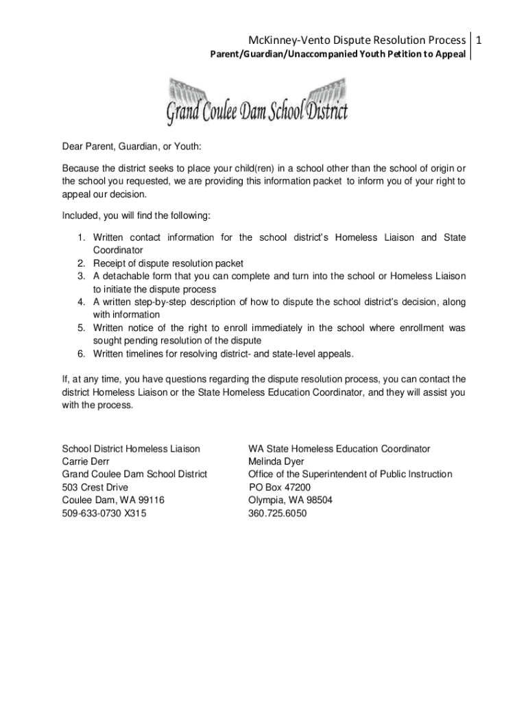 Parent/Guardian/Unaccompanied Youth Petition to Appealed Parent, Guardian, or Youth:
