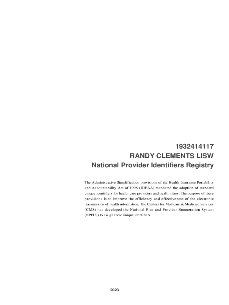 1932414117 RANDY CLEMENTS LIST National Provider Identifiers Registry The Administrative Simplification provisions of the Health Insurance Portability and Accountability Act of 1996 (HIPAA) mandated