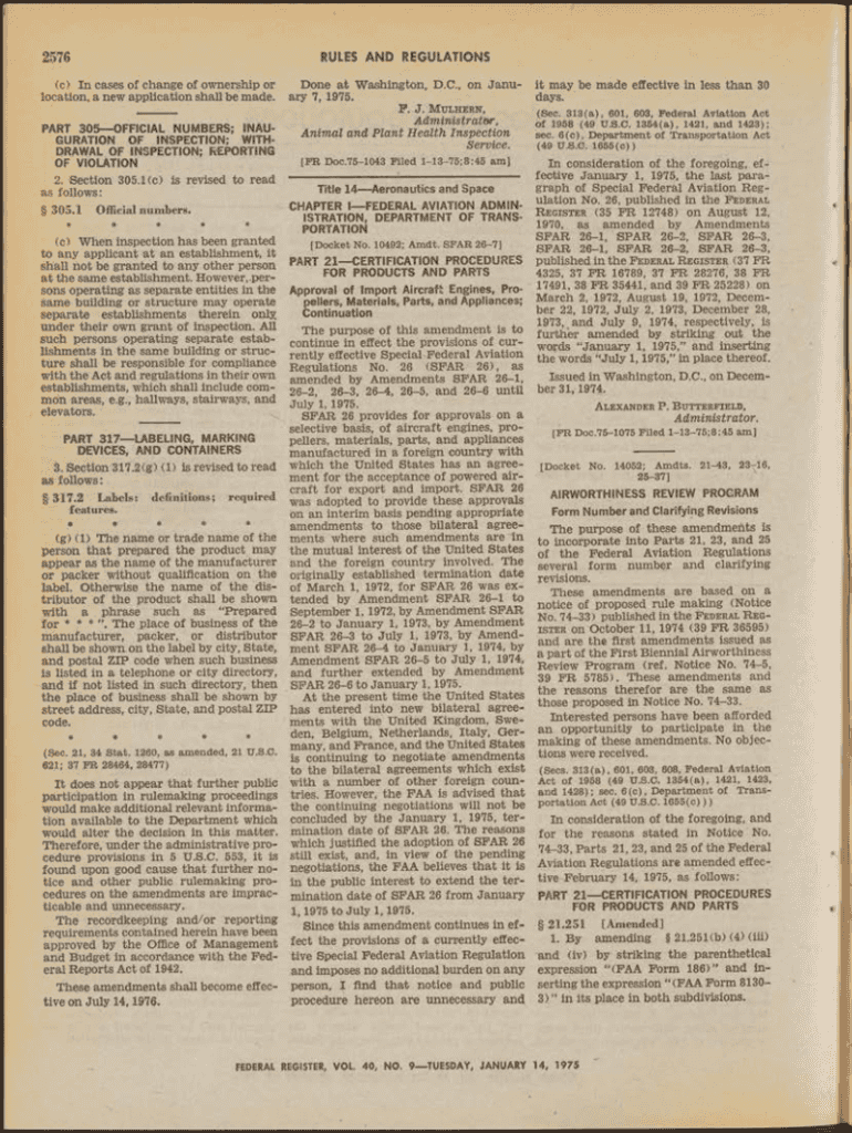 RULES AND REGULATIONS2576© In cases of change of ownership or Done at Washington, D.C., on Jane location, a new application shall be made. ARY 7, 1975. F. J. M ulcer, Administrator, Animal and Plant