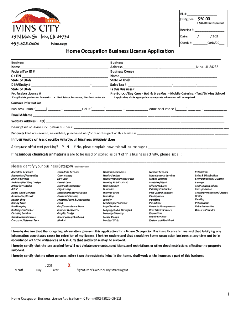 Get the free Home Occupation Business License ApplicationIC Form ...