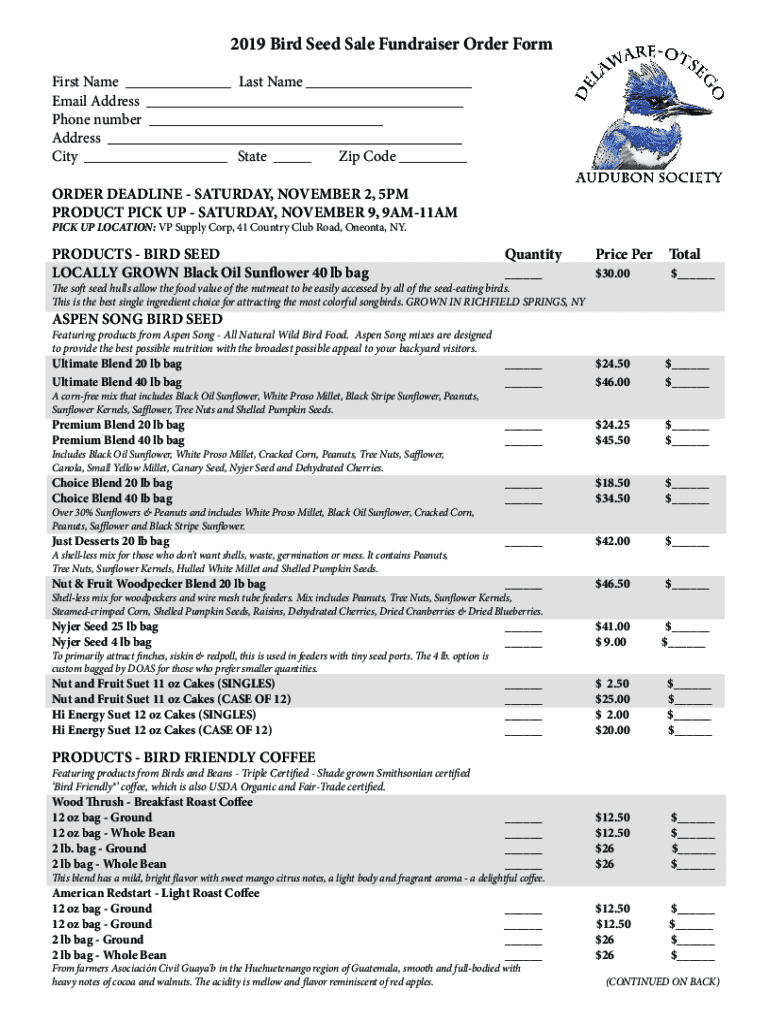 How to fill out 2019 bird seed sale
