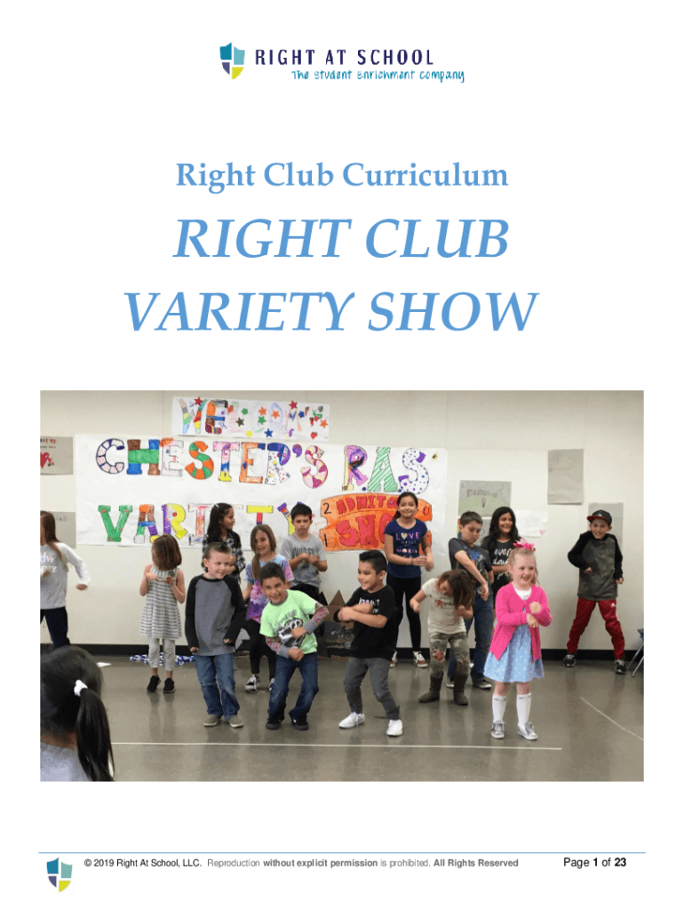 Right Club CurriculumRIGHT CLUB VARIETY SHOW 2019 Right At School, LLC. Reproduction without explicit permission is prohibited. All Rights Reserved Page 1 of 23Right Club Variety Show Overview Focus: