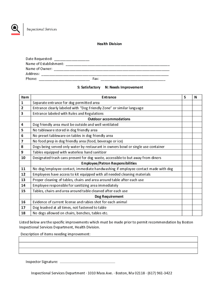 GUIDELINES FOR THE ALLOWANCE OF DOGS IN OUTDOOR DINING AREAS As Boston continues to become a more dog friendly city the Inspection Services Departments Health Division is expanding its dog friendly