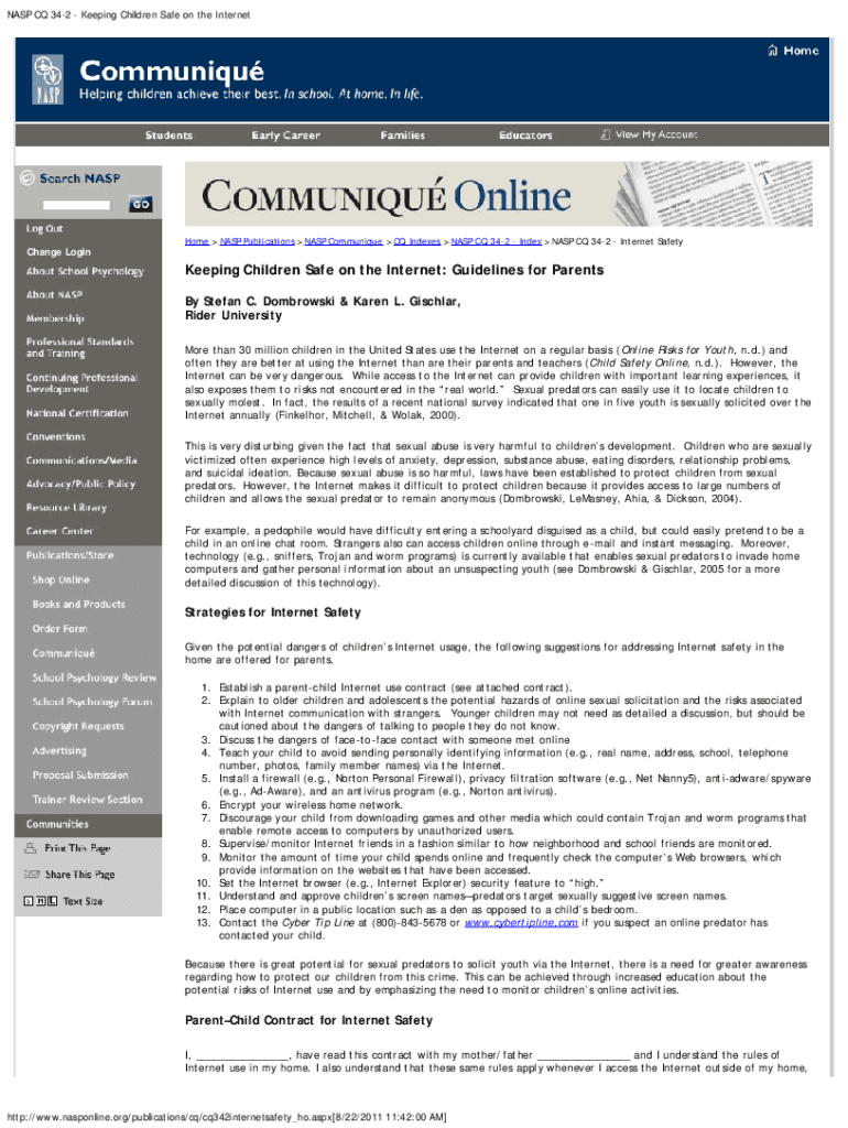 Get the free NASP CQ 34-2 - Keeping Children Safe on the Internet