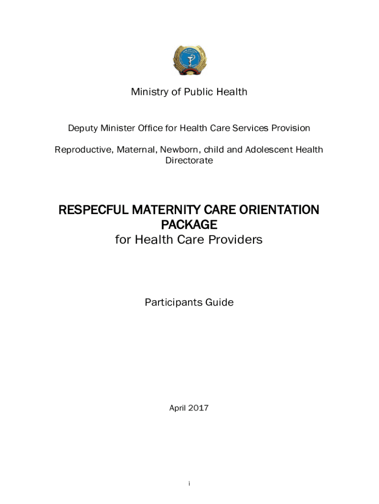 Ministry of Public Health Deputy Minister Office for Health Care Services Provision Reproductive, Maternal, Newborn, child and Adolescent Health DirectorateRESPECFUL MATERNITY CARE ORIENTATION PACKAGE