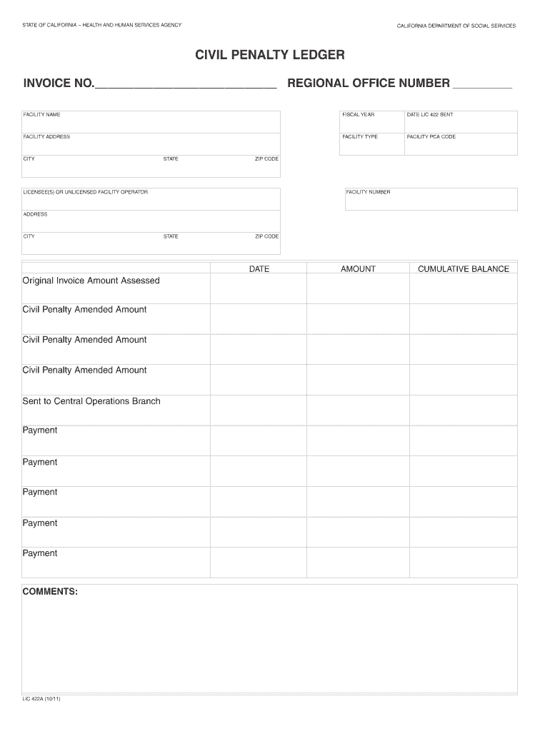 LIC 422A (10/11). DATE. AMOUNT. CUMULATIVE BALANCE. Original Invoice Amount Assessed. Civil Penalty Amended Amount. Civil Penalty Amended ...