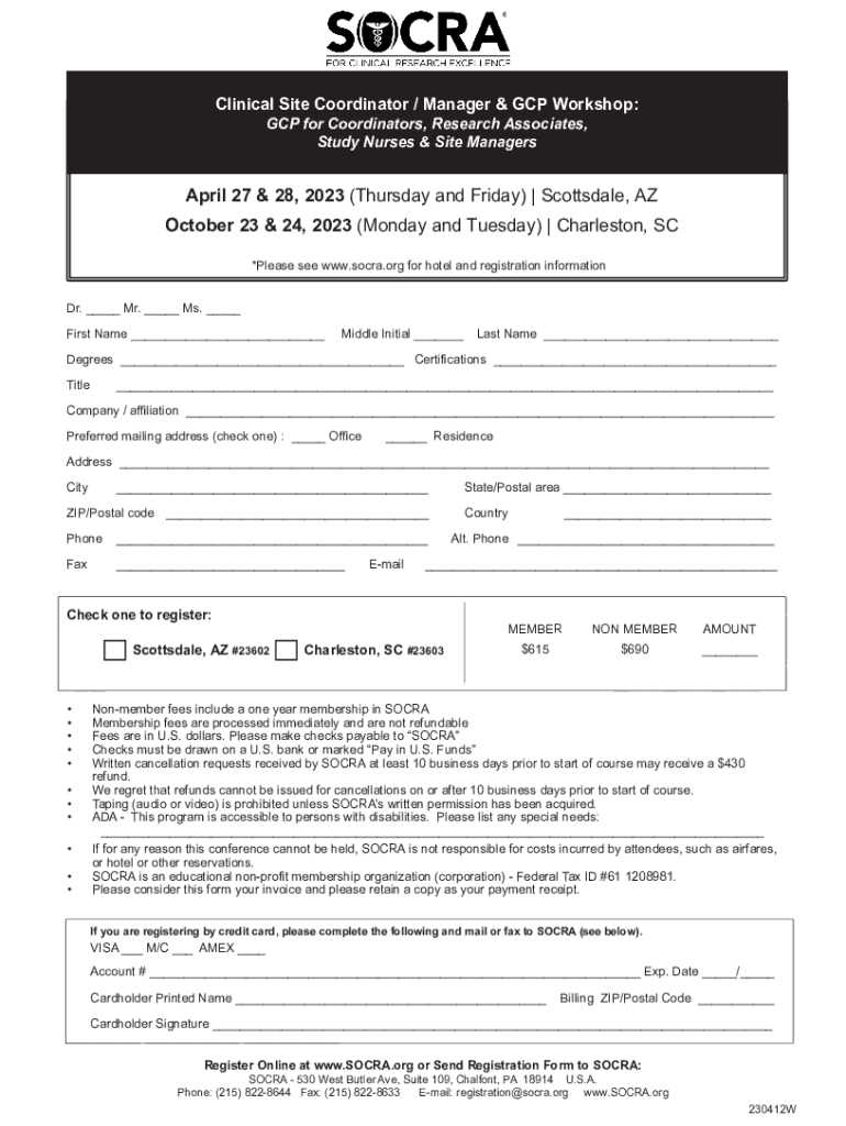 Clinical Site Coordinator / Manager & GCP Workshop: GCP for Coordinators, Research Associates, Study Nurses & Site Managers April 27 & 28, 2023 (Thursday and Friday) | Scottsdale, AZ October 23 &