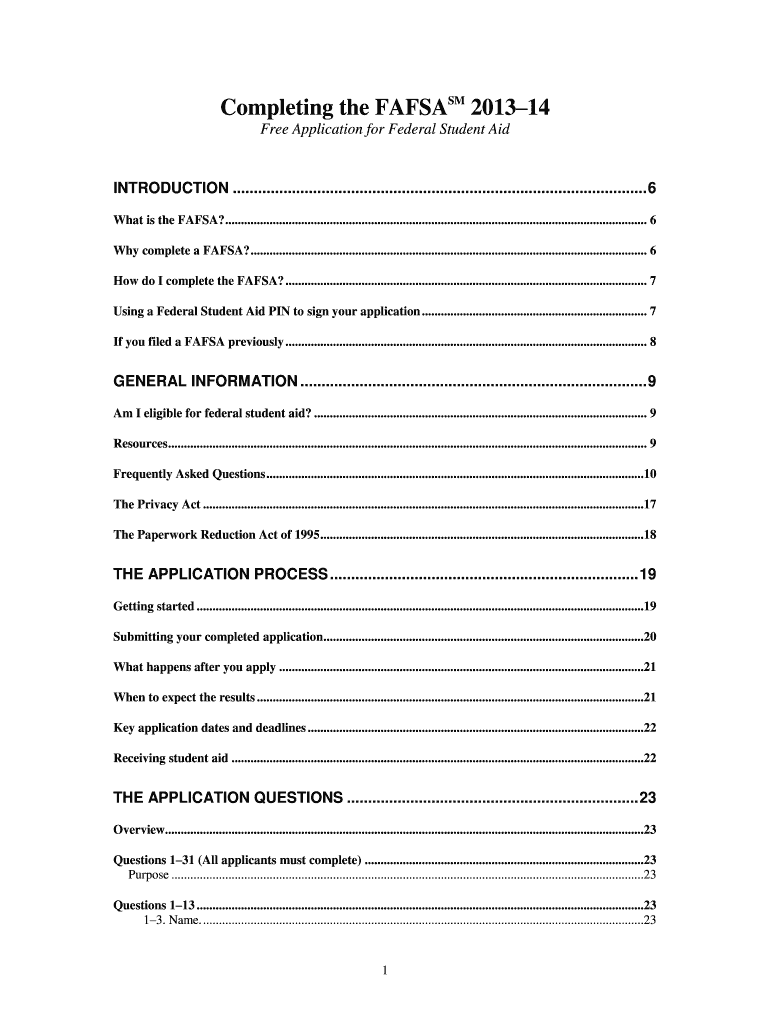 Completing the FAFSAs 2013 14 Free Application for Federal Student Aid INTRODUCTION .................................................................................................. 6 What is the