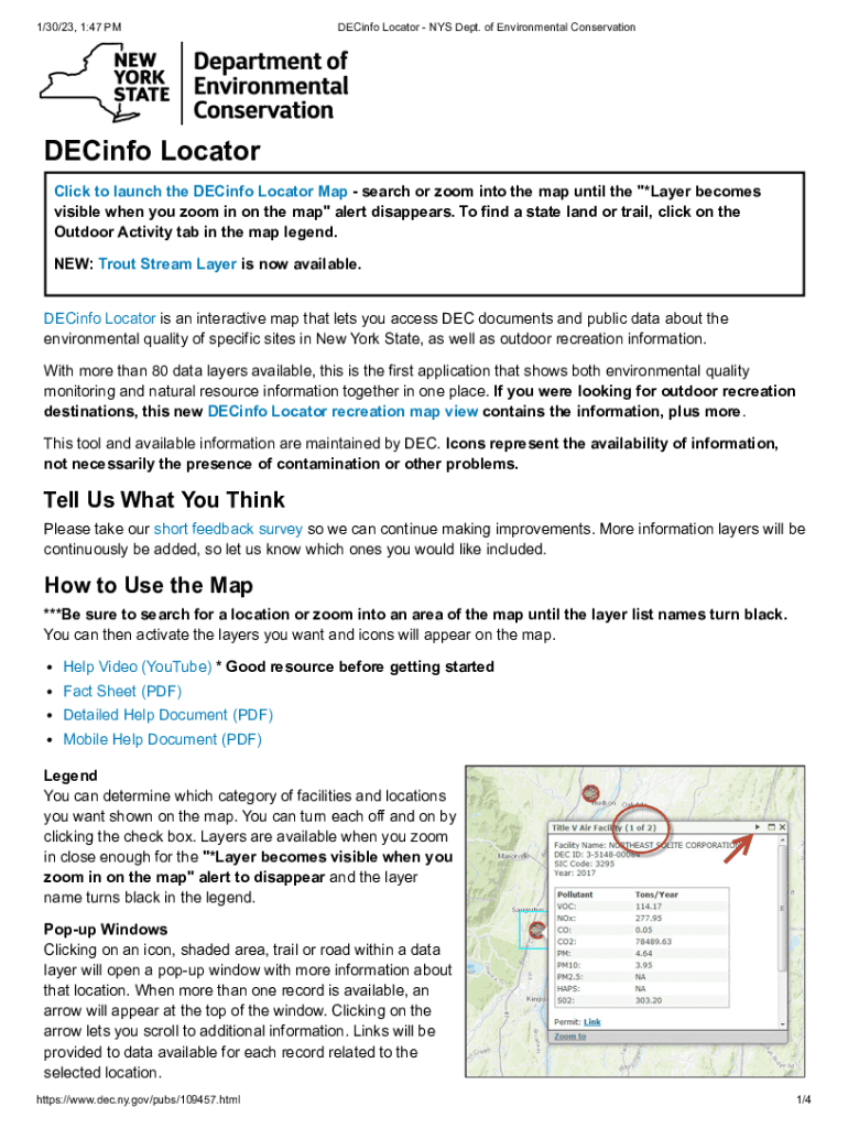 1/30/23, 1:47 PMDECinfo Locator NYS Dept. of Environmental ConservationDECinfo Locator Click to launch the DEC info Locator Map search or zoom into the map until the \”*Layer becomes visible when