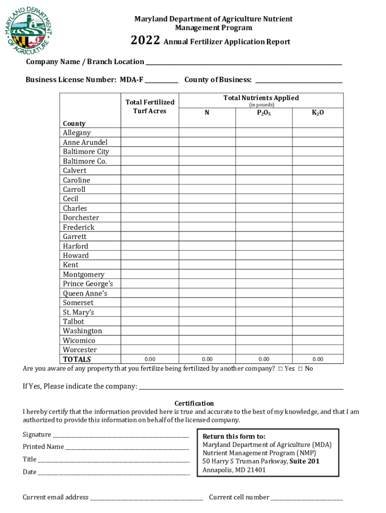 Annual fertilizer application reporting can be filled out online or on paper forms provided by relevant agricultural authorities.