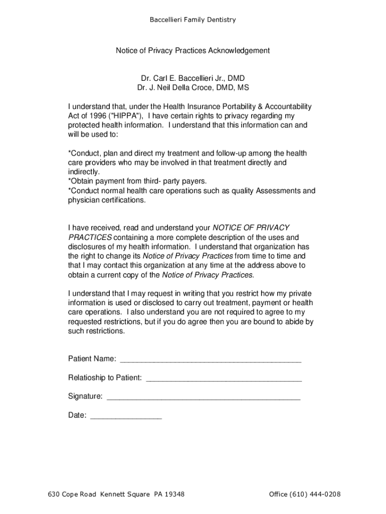 Get the free Notice of Privacy Practices Acknowledgement Dr. Carl E. Baccellieri ...