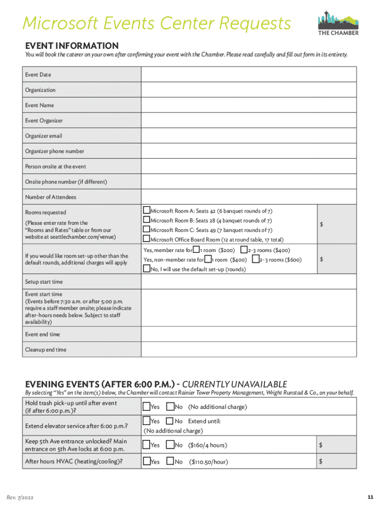 The Microsoft Events Center at the Seattle Metropolitan Chamber of Commerce offers 2,500 square feet of conference space that when divided can accommodate separate groups of up to 28, 42, or 49. When