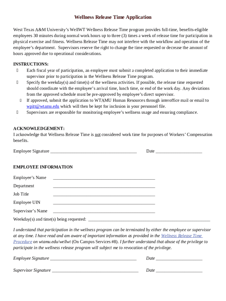 How to fill out Wellness Release Time Application