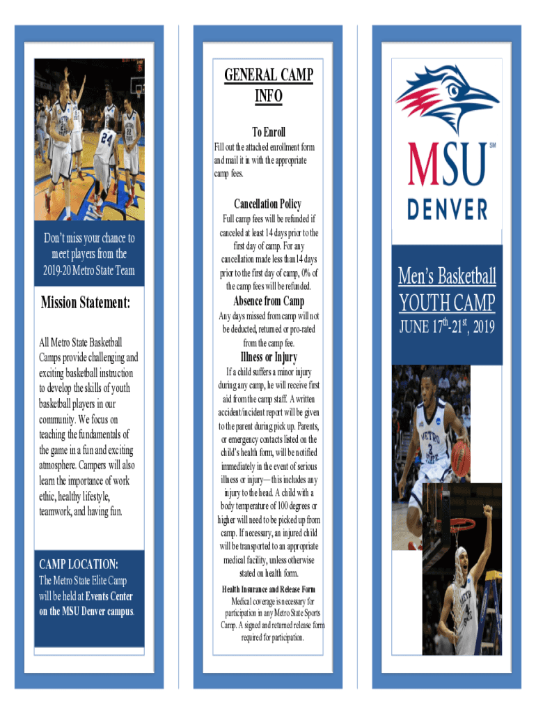 GENERAL CAMP INFO To Enroll Fill out the attached enrollment form and mail it in with the appropriate camp fees. Cancellation Policy Don't miss your chance to meet players from the 201920 Metro State