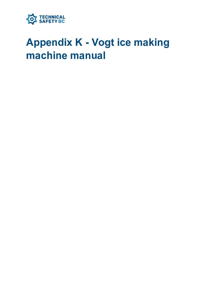 Appendix K Vogt ice making machine manualP24A & P34A TUBE ICE MACHINEService Manual $5000 12/20/12NOTICEThis manual is the property of the owner of this particular Tube Ice machine. Model #___ Serial