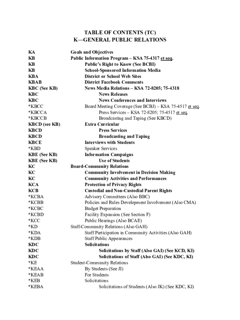 Get the free TABLE OF CONTENTS (TC) KGENERAL PUBLIC RELATIONS
