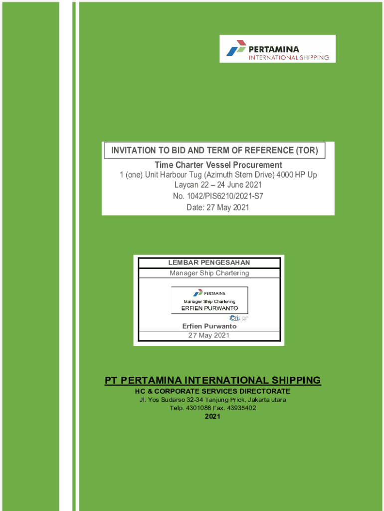 Time Charter Vessel Procurement1 (one) Unit Harbor Tug (Azimuth Stern Drive) 4000 HP Up