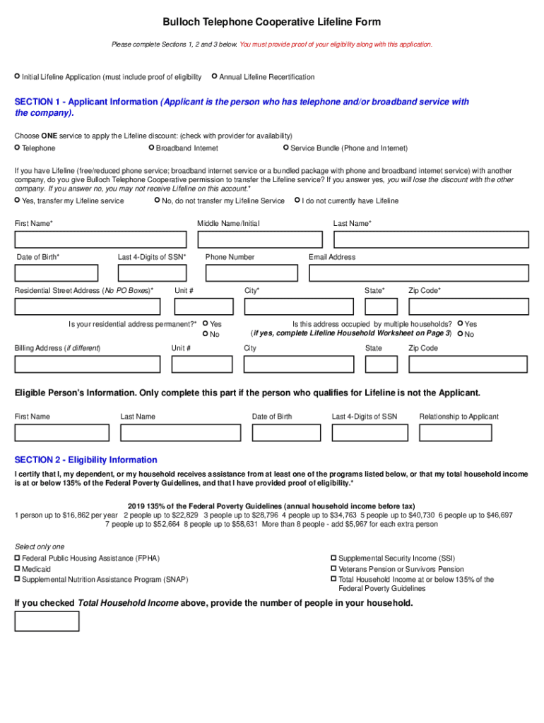 How to fill out bulloch telephone cooperative lifeline
