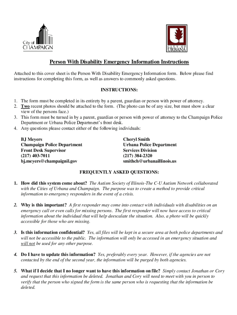 Get the free Person With Disability Emergency Information Instructions