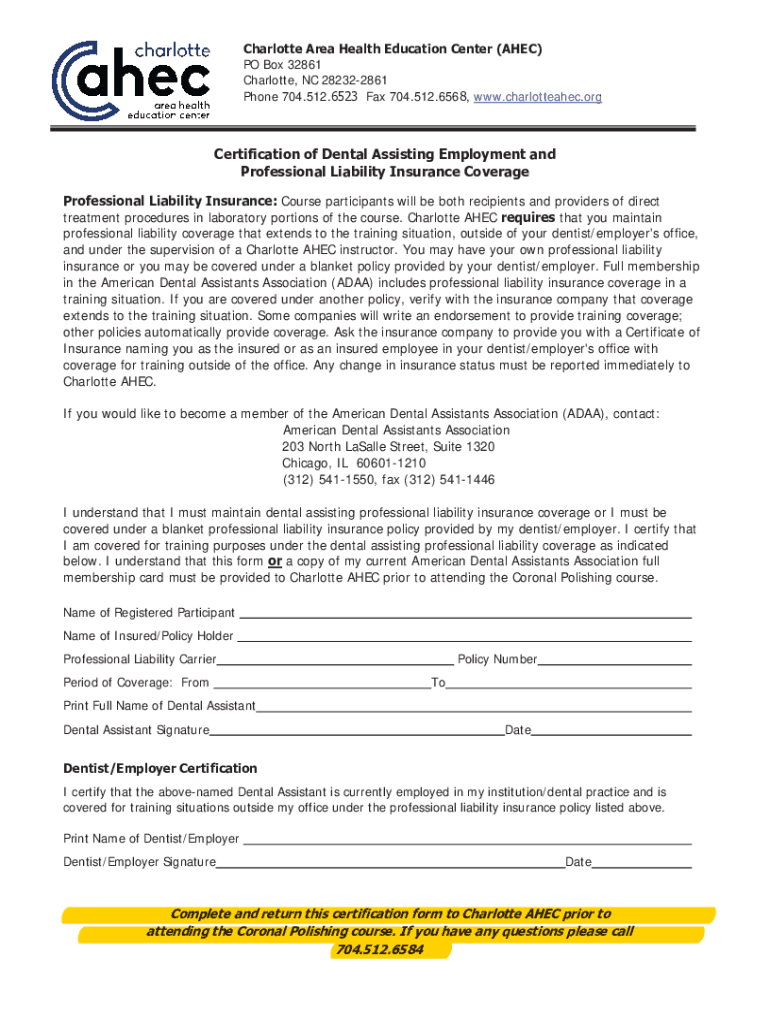 &HUWLILFDWLRQRI\'HQWDO$VVLVWLQJ(PSORPHQWDQG