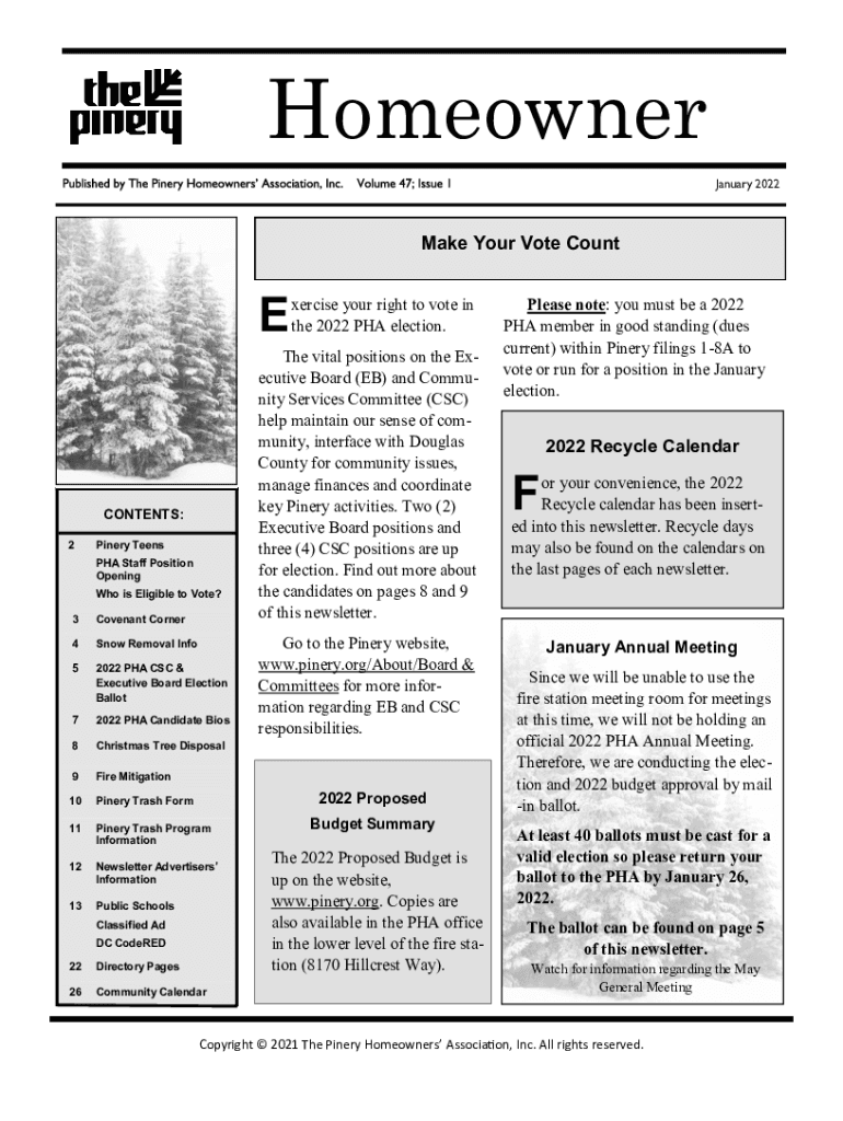 Who is Eligible to Vote?3Covenant Corner4Snow Removal Info52022 PHA CSC