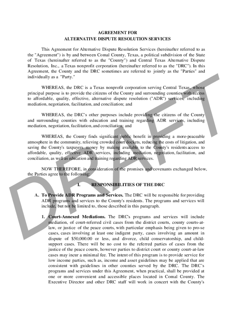 AGREEMENT FOR ALTERNATIVE DISPUTE RESOLUTION SERVICES This Agreement for Alternative Dispute Resolution Services (hereinafter referred to as the \” Agreement\”) is by and between Coal County,