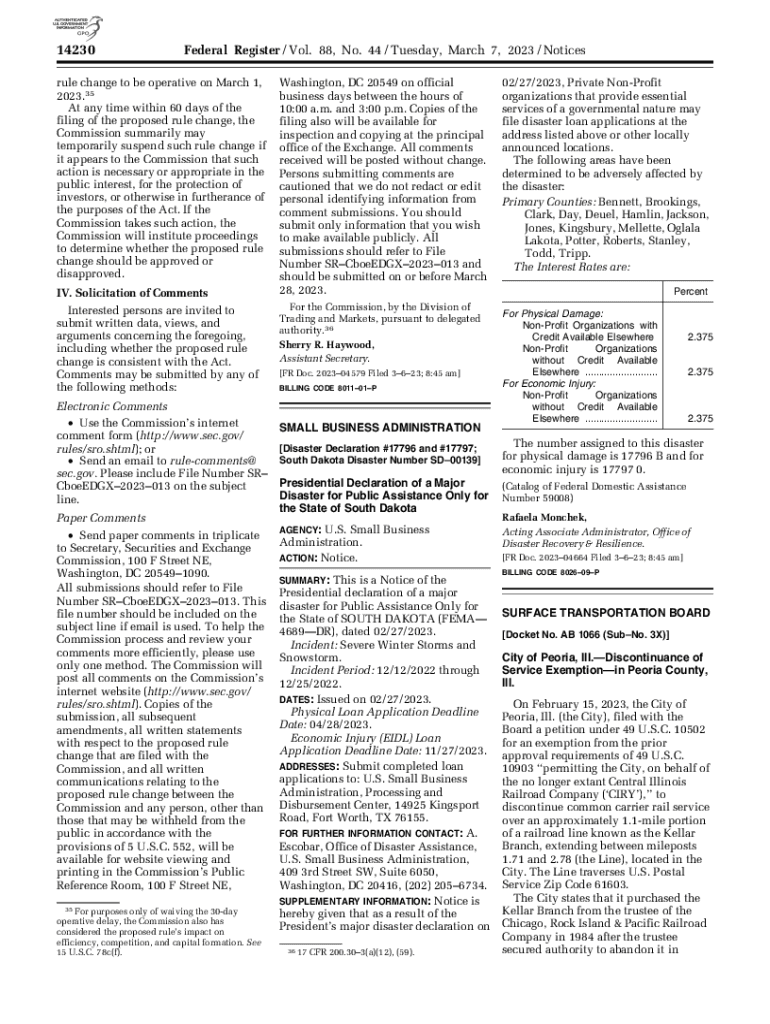 14230Federal Register / Vol. 88, No. 44 / Tuesday, March 7, 2023 / Notices rule change to be operative on March 1, 2023.35 At any time within 60 days of the filing of the proposed rule change, the