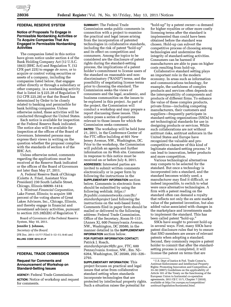 Get the free Notice of Proposals To Engage in - ftc