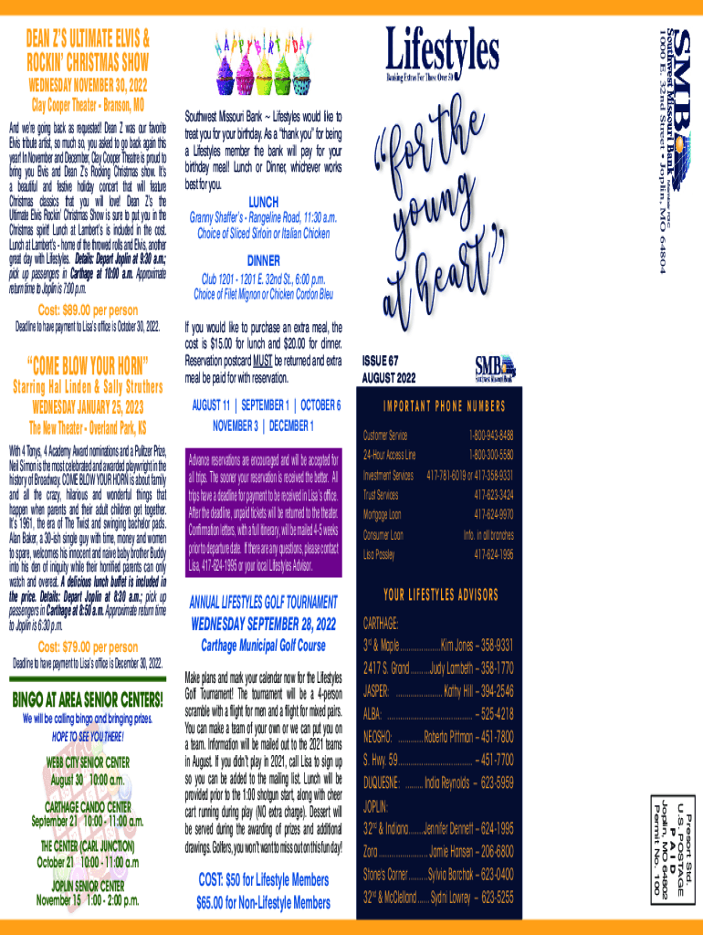 WEDNESDAY, NOVEMBER 30, 2022, Clay Cooper Theater Branson, Most: $89.00 per personDeadline to have payment to Lisa's office is October 30, 2022.COME BLOW YOUR HORNS tarring Hal Linden & Sally Truthers