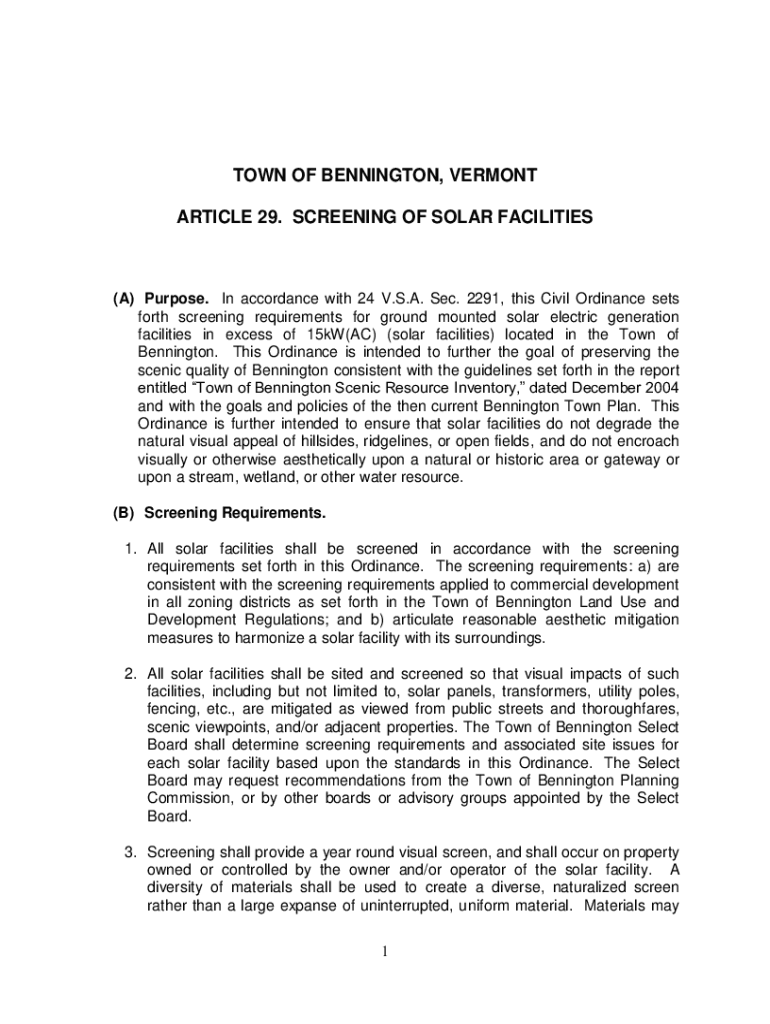 Get the free town of bennington, vermont - article 29. screening of solar ...